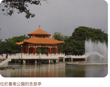 為感念每日在臺南公園運動而恢復健康,捐建了自強亭,又於1982年捐建早覺亭,1989年捐建念慈亭及念慈橋。