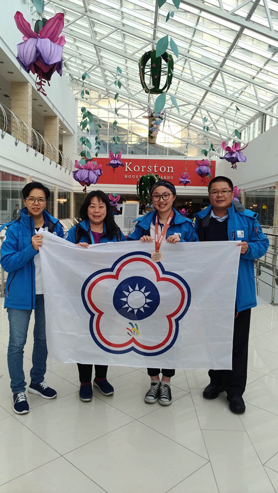 由南臺科技大學餐旅管理系黃旭怡老師、蔡宏儒老師及高雄漢來大飯店點心房主廚蘇曉芬等多位教師及專家所組成的訓練團隊日前帶領該系學生洪瑀襄,隨同勞動部代表團前往參加俄羅斯喀山國際技能競賽,榮獲西點製作類世界銅牌獎,為國爭光。